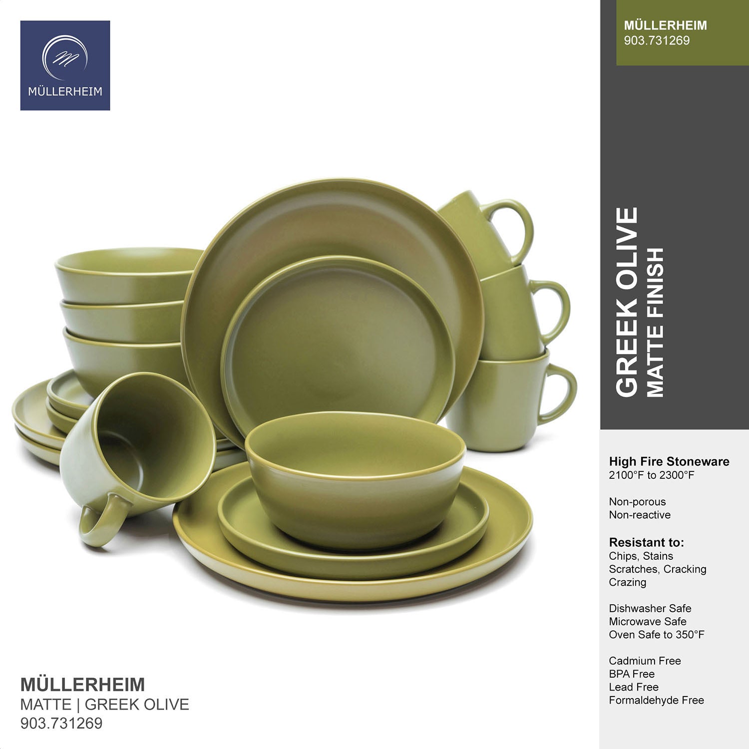 - 【DISHWASHER AND MICROWAVE SAFE】MULLERHEIM Olive Green plates and bowls sets for 4 are crafted from premium stoneware, ensuring durability and quality. Every plate and bowl set in our range is completely safe for use in both dishwashers and microwaves.
