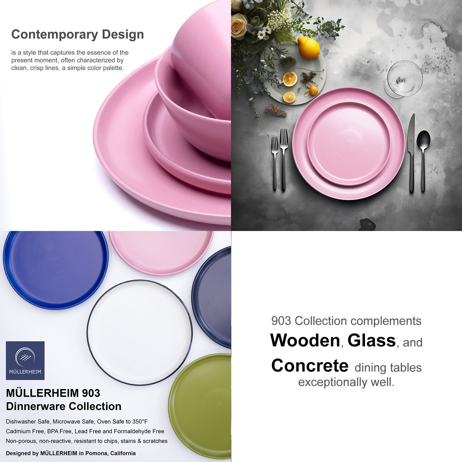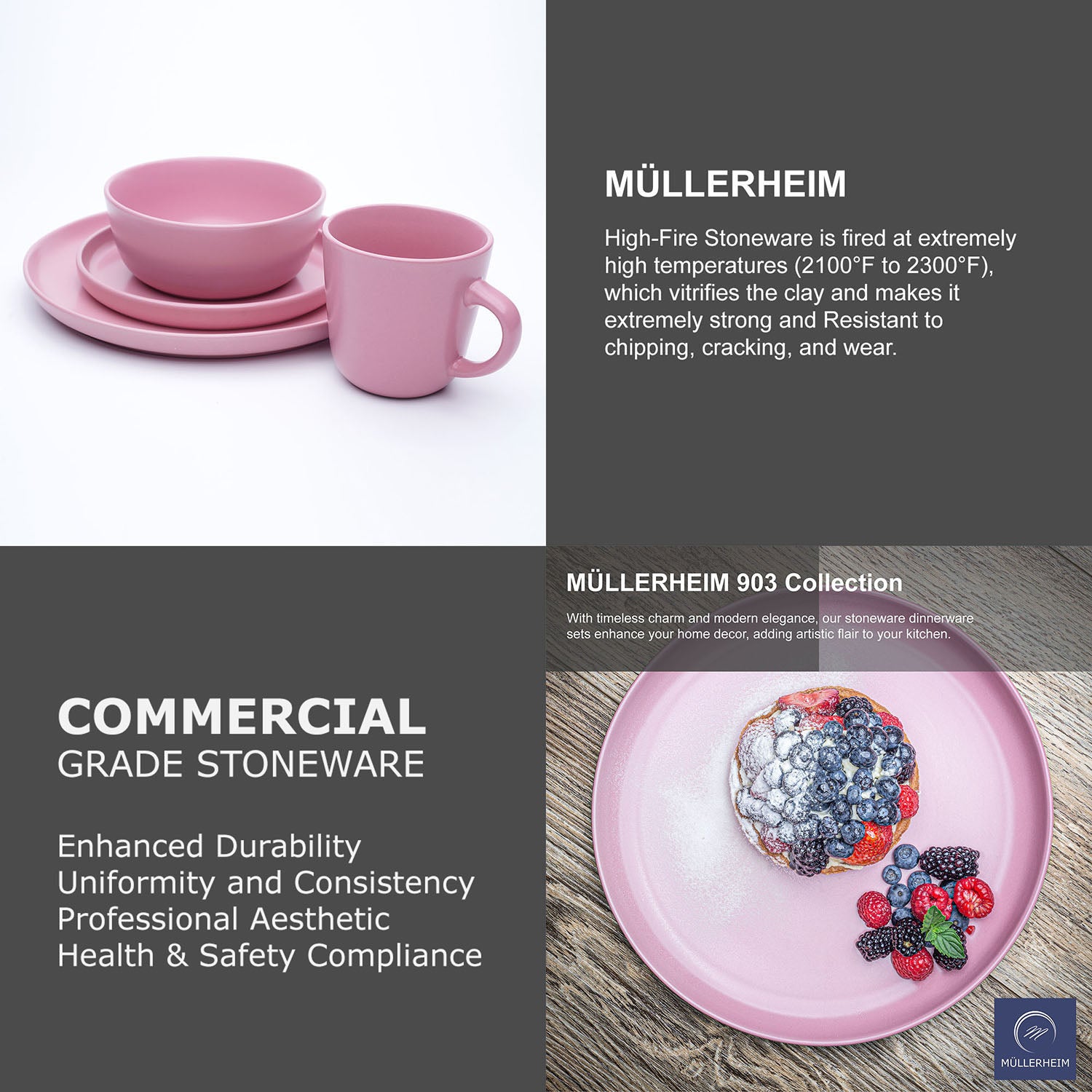 - 【DISHWASHER AND MICROWAVE SAFE】MULLERHEIM Pink plates and bowls sets for 4 are crafted from premium stoneware, ensuring durability and quality. Every plate and bowl set in our range is completely safe for use in both dishwashers and microwaves.