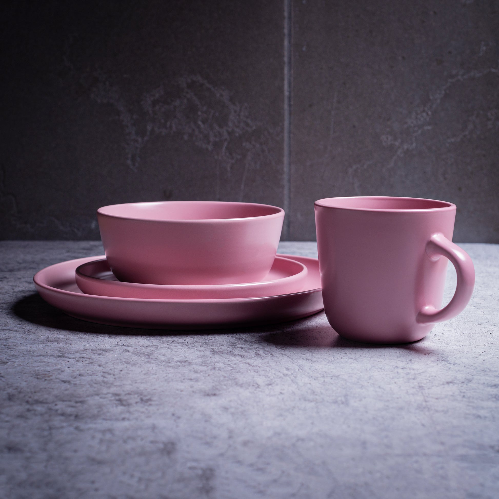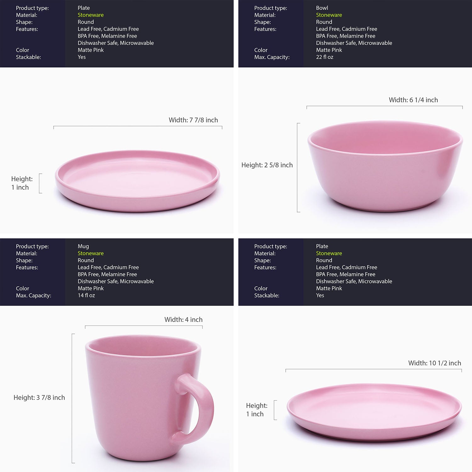 - 【Set includes】This Pink dinnerware set for 4 includes 4*10” dinner plates, 4*8” salad plates, 4*4" mugs and 4*6.25” cereal bowls. This is a great combination for a family dinner party.